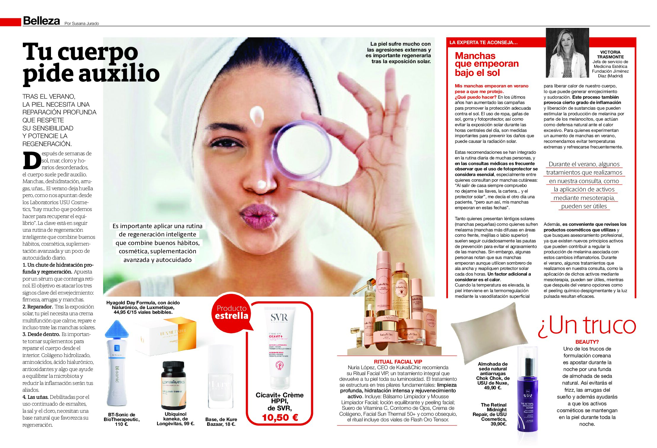 Explora los artículos de la Dra. Trasmonte en Telva y AS Magazine, donde comparte su visión sobre la salud, la belleza natural y tratamientos esenciales como el ácido hialurónico.